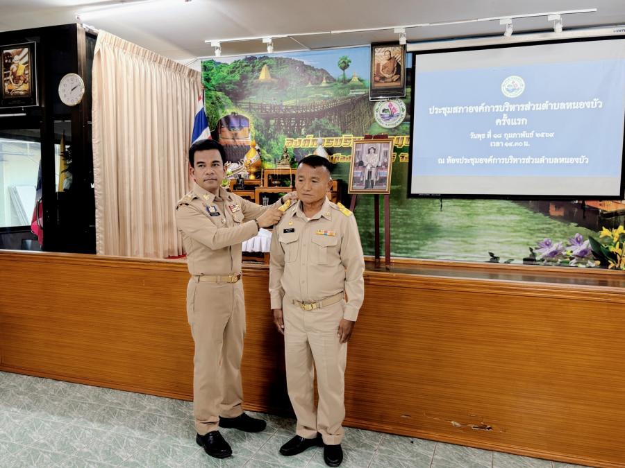 องค์การบริหารส่วนตำบลหนองบัว จัดประชุมสภาองค์การบริหารส่วนตำบลหนองบัว ครั้งแรก โดยได้รับเกียรติจาก นายสมบูรณ์ แผนสมบูรณ์ นายอำเภอเมืองกาญจนบุรี เป็นประธานในที่ประชุม พร้อมประดับเครื่องหมายอินทรธนูให้กับสมาชิกสภา อบต.หนองบัว นายก อบต.หนองบัว และคณะผู้บริหาร