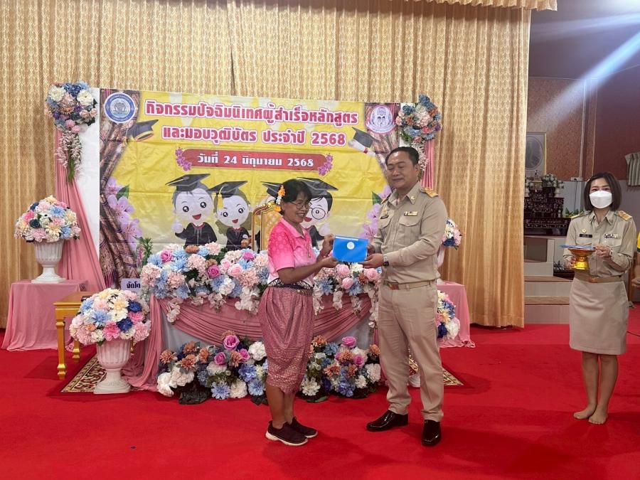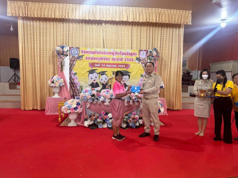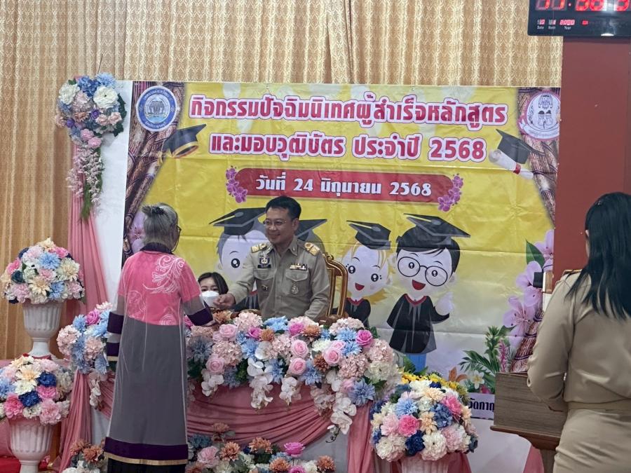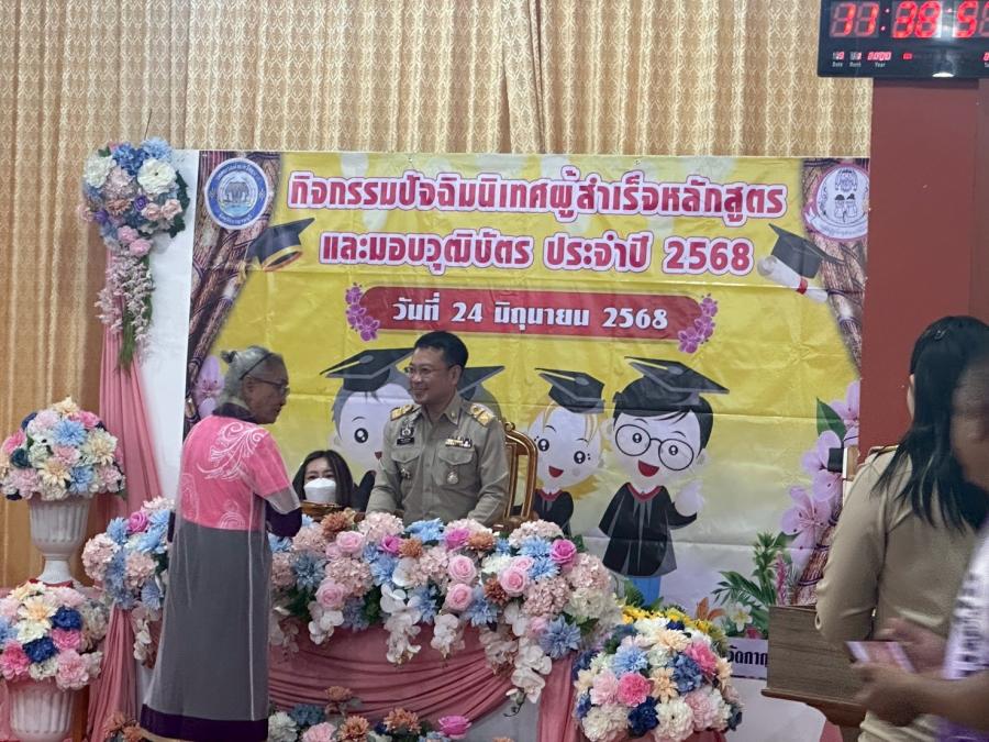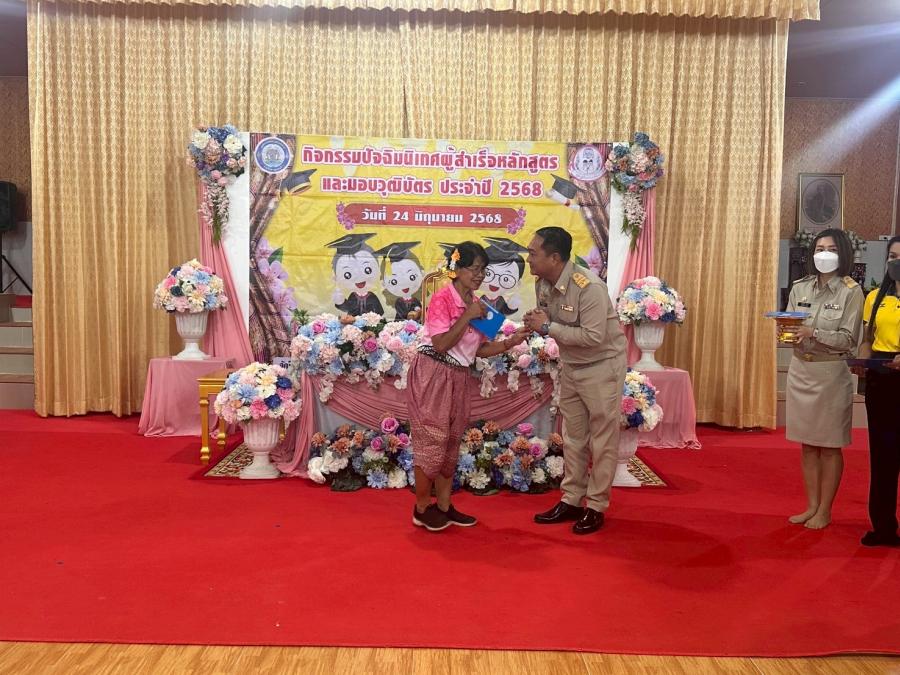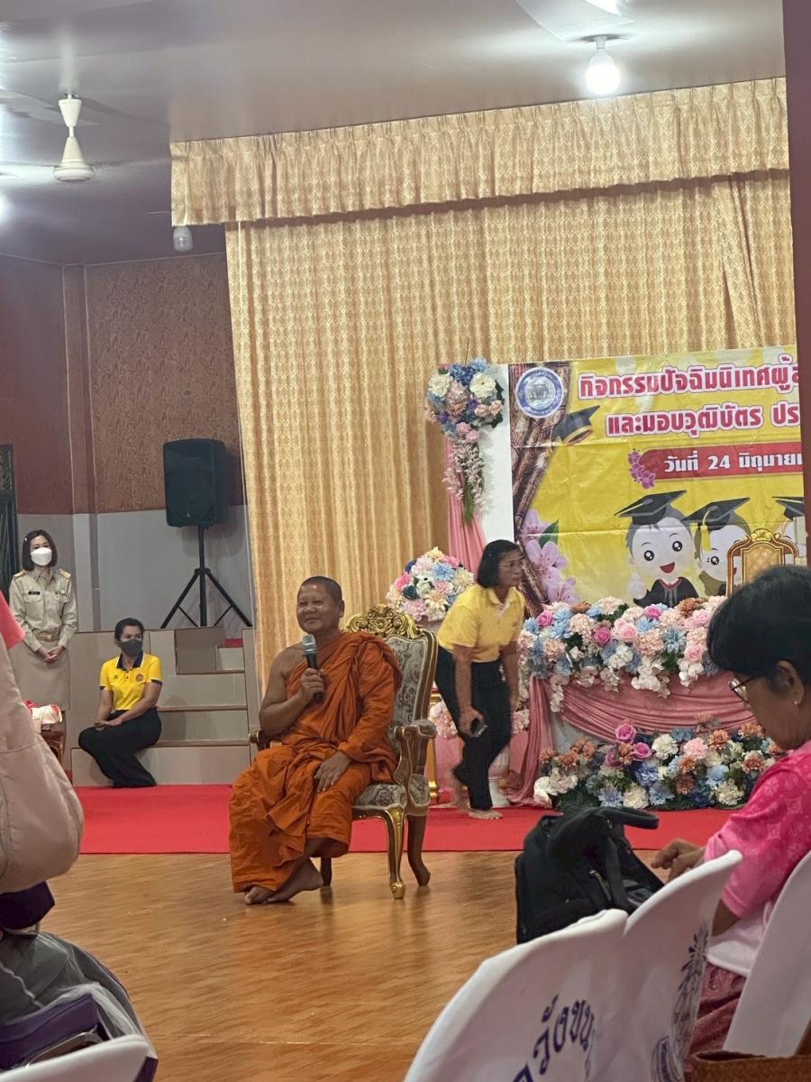เมื่อวันที่ 24 มิถุนายน 2568 เวลา 09.00 น. กองสวัสดิการสังคม โดย นักสังคมสงเคราะห์ และเจ้าหน้าที่ นำผู้สูงอายุ โรงเรียนผู้สูงอายุ อบต.หนองบัว รุ่นที่ 1 เข้าร่วมกิจกรรมพิธีมอบวุฒิบัตรให้กับผู้สำเร็จการศึกษาหลักสูตรวิทยาลัยชื่นบานตำบลวังขนาย รุ่นที่ 4 ของเทศบาลตำบลวังขนาย ณ อาคารสำนักปฏิบัติธรรมประจำจังหวัดกาญจนบุรี แห่งที่ 18 วัดวังขนายทายิการาม ตำบลวังขนาย อำเภอท่าม่วง จังหวัดกาญจนบุรี