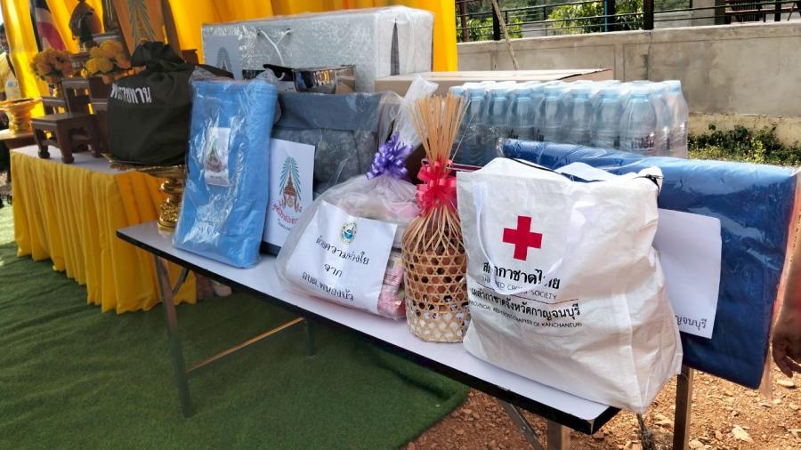 ทั้งนี้ ผู้ว่าราชการจังหวัดกาญจนบุรีและหน่วยงานที่เกี่ยวข้องได้ร่วมกันมอบสิ่งของพระราชทาน ประกอบด้วย เครื่องอุปโภค-บริโภค เครื่องครัว เครื่องนอน แก่ผู้ประสบภัย เพื่อบรรเทาความเดือดร้อนแก่ราษฎร