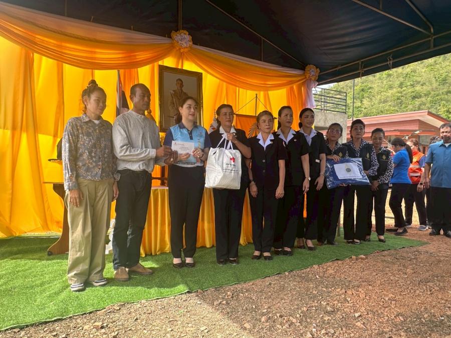 วันนี้ (15 กรกฎาคม 2568) เวลา 09.00 น. ณ บ้านผู้ประสบภัย บ้านไม่มีเลขที่ หมู่ที่ 4 ตำบลหนองบัว อำเภอเมืองกาญจนบุรี จังหวัดกาญจนบุรี นายอธิสรรค์ อินทร์ตรา ผู้ว่าราชการจังหวัดกาญจนบุรี เป็นประธานพิธีเชิญและมอบสิ่งของพระราชทานของมูลนิธิราชประชานุเคราะห์ ในพระบรมราชูปถัมภ์ แก่ประชาชนผู้ประสบอัคคีภัย โดยมี นายสมบูรณ์ แผนสมบูรณ์ นายอำเภอเมืองกาญจนบุรี กล่าวรายงานสถานการณ์และการช่วยเหลือในเบื้องต้นแก่ผู้ประสบอัคคีภัย พร้อมด้วย นางสาวกิตติยา จึงรุ่งเจริญกิจ นายกเหล่ากาชาดจังหวัดกาญจนบุรี พันตำรวจเอกภัทรชัย กอสนาน รองผู้บังคับการตำรวจภูธรจังหวัดกาญจนบุรี นายทรัฑ เหลืองสอาด ปลัดจังหวัดกาญจนบุรี นายชำนาญ แตงจุด หัวหน้าสำนักงานป้องกันและบรรเทาสาธารณภัยจังหวัดกาญจนบุรี นางจันทร์จิรา พัฒนศิริ พัฒนาสังคมและความมั่นคงของมนุษย์จังหวัดกาญจนบุรี หัวหน้าส่วนราชการ ผู้บริหารท้องถิ่น กำนัน ผู้ใหญ่บ้าน และจิตอาสา 904 เจ้าหน้าที่ และประชาชนเข้าร่วมพิธีฯ