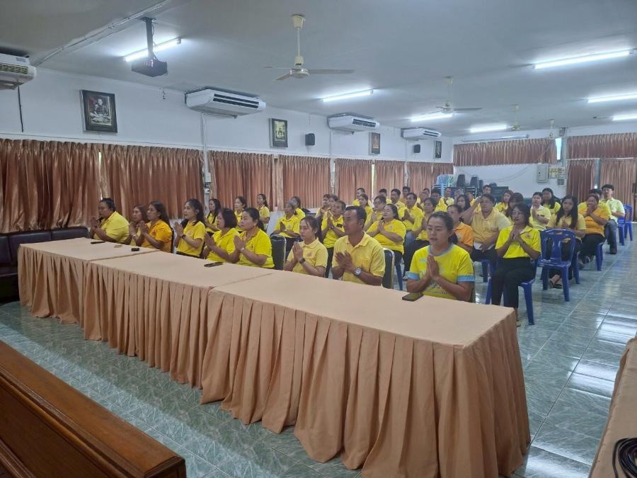 นายกองค์การบริหารส่วนตำบลหนองบัว ประธานสภา คณะผู้บริหาร ผู้อำนวยการกอง หัวหน้าส่วน พนักงานส่วนตำบล ลูกจ้าง พนักงานจ้าง องค์การบริหารส่วนตำบลหนองบัว ร่วมพิธีเจริญพระพุทธมนต์ เจริญจิตตภาวนา ผ่านระบบซูม (Zoom Cloud Meeting) เนื่องในโอกาสวันเฉลิมพระชนมพรรษา พระบาทสมเด็จพระเจ้าอยู่หัว และพระบรมวงศานุวงศ์ ประจำปี พ.ศ.2568 พร้อมกันทั่วประเทศ ณ ห้องประชุมองค์การบริหารส่วนตำบลหนองบัว