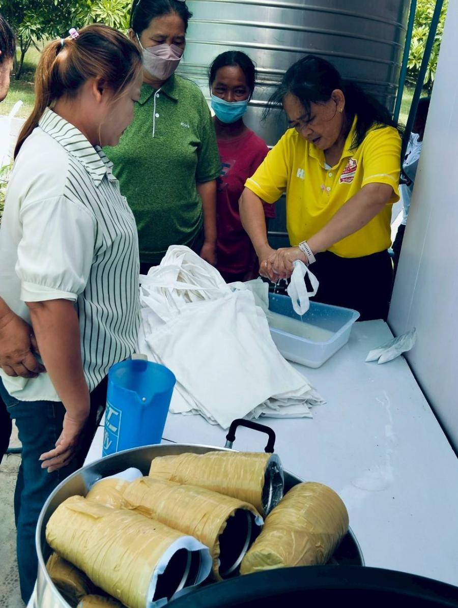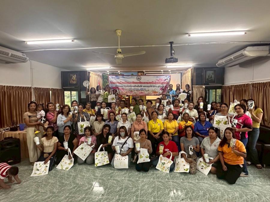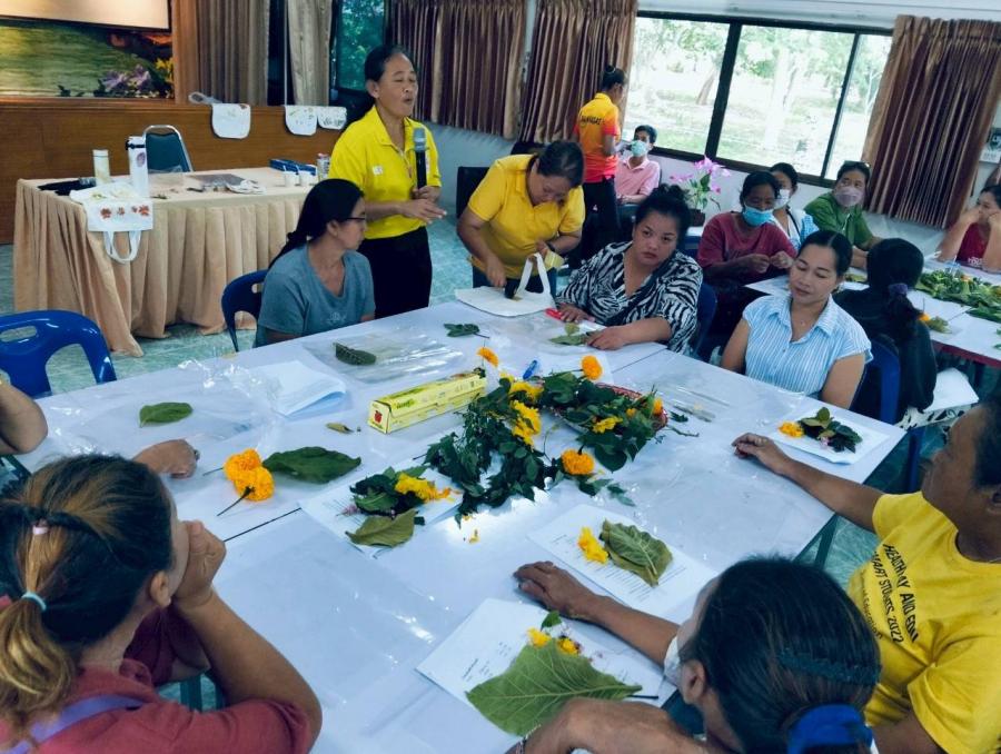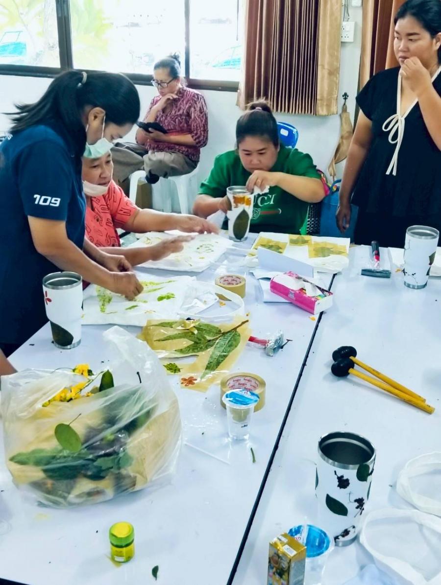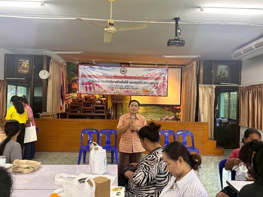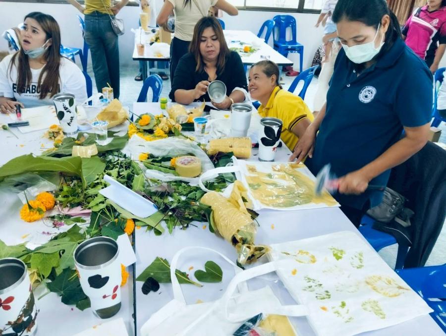 โดยได้รับเกียรติจากนางจันทร์ทิพย์ สมประสงค์ พร้อมทีมงาน มาเป็นวิทยากรการพิมพ์ลายด้วยดอกไม้และใบไม้ ทำให้ไม่เป็นพิษต่อทั้งสิ่งแวดล้อม สุขภาพ และยังส่งเสริมความคิดสร้างสรรค์และเศรษฐกิจชุมชนอีกด้วย โดยเฉพาะการลดการใช้สารเคมีที่เป็นอันตรายและการสร้างลวดลายที่เป็นเอกลักษณ์. และสตรีนำความรู้ที่ได้รับนำไปประยุกต์ใช้ในชีวิตประจำวันได้ต่อไป