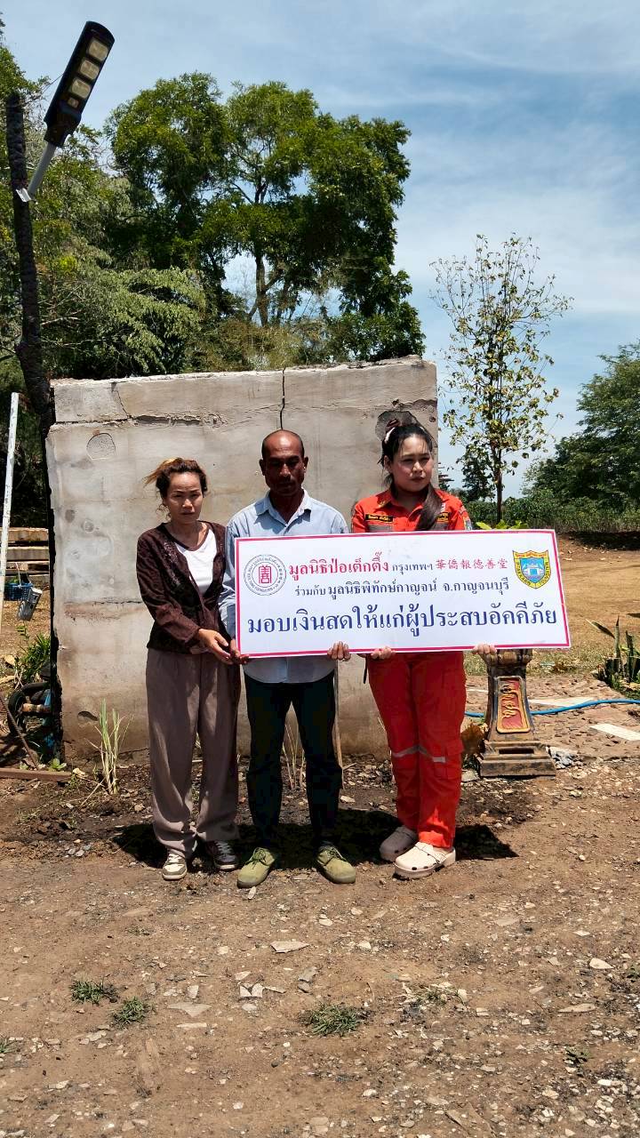 มูลนิธิปอเต๊กตึ๊ง กรุงเทพมหานคร ร่วมกับ มูลนิธิพิทักษ์กาญจน์จังหวัดกาญจนบุรี นำเงินสดมามอบให้กับ นายอนุรักษ์ ทับทอง ผู้ประสบเหตุจากเพลิงไหม้บ้าน หมู่ที่ 4 ตำบลหนองบัว โดยมีนางอมราลักษณ์ ใบบัว นายกองค์การบริหารส่วนตำบลหนองบัว หัวหน้าสำนักปลัด นักพัฒนาชุมชน เจ้าพนักงานป้องกันและบรรเทาสาธารณภัย ร่วมเป็นสักขีพยานในวันรับมอบ